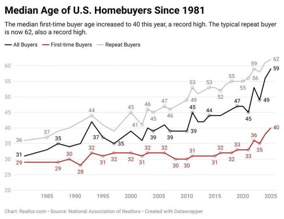 The average first-time homebuyer is now 40 years old. Think about that. If you’re 40 and you take out a 50-year mortgage, you’re making payments until you’re 90.