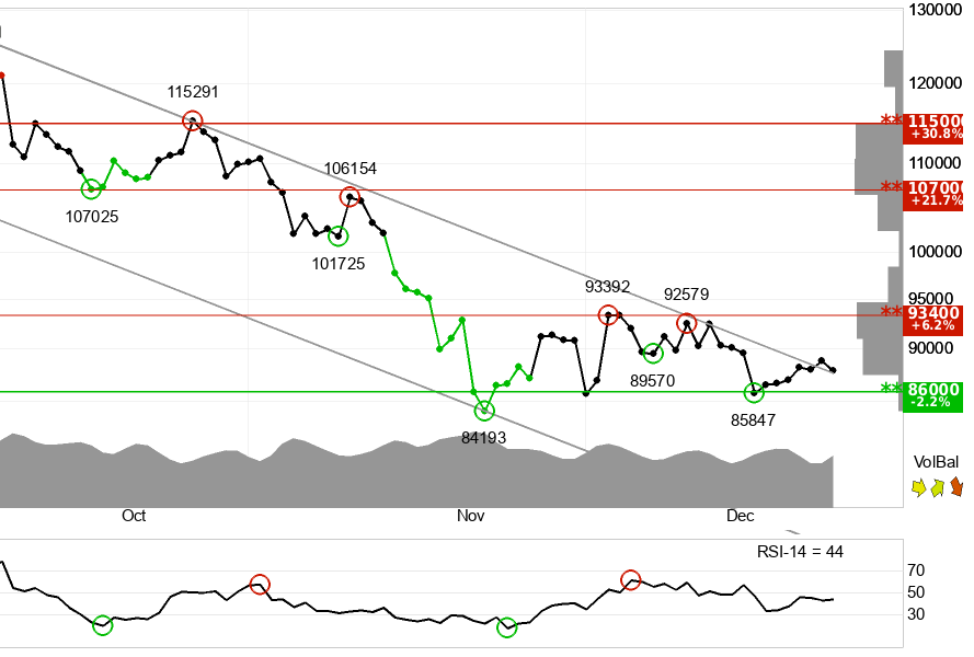 Short term: sideways to lower, with support near 86,000.