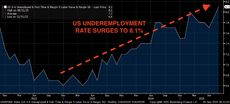 While everyone focuses on the official unemployment rate, the underemployment rate just hit 8.1% - the highest since 2021. This chart shows the real story of American workers that politicians don't want you to see.