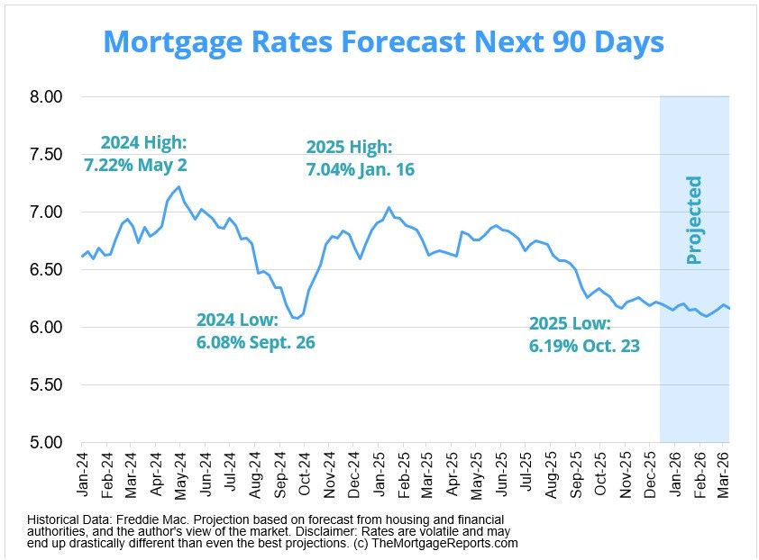 Neutral: mortgage rates look rangebound near the low to mid 6% area in early 2026.