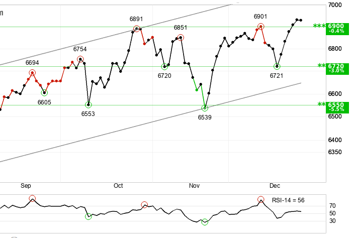 Trend: Positive The S&P 500 is technically in a Positive trend. The index is moving within a ârising trend channel,â which simply means over the last few weeks, the highs are getting higher and the lows are getting higher. It recently broke through a âresistanceâ level at 6,900 points. Think of resistance like a glass ceilingâonce you smash through it, that ceiling often becomes the new floor. However, the RSI (a momentum indicator) is showing a small warning sign, suggesting the rally might need to take a quick breather before going higher.